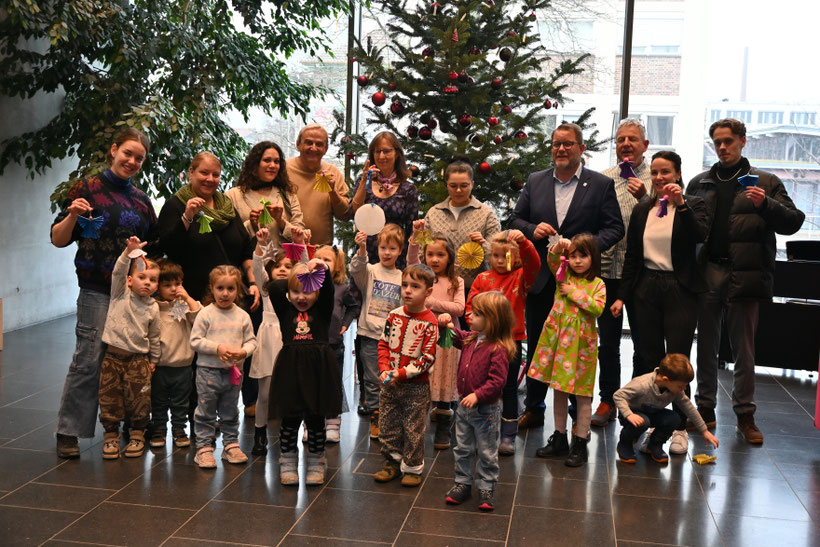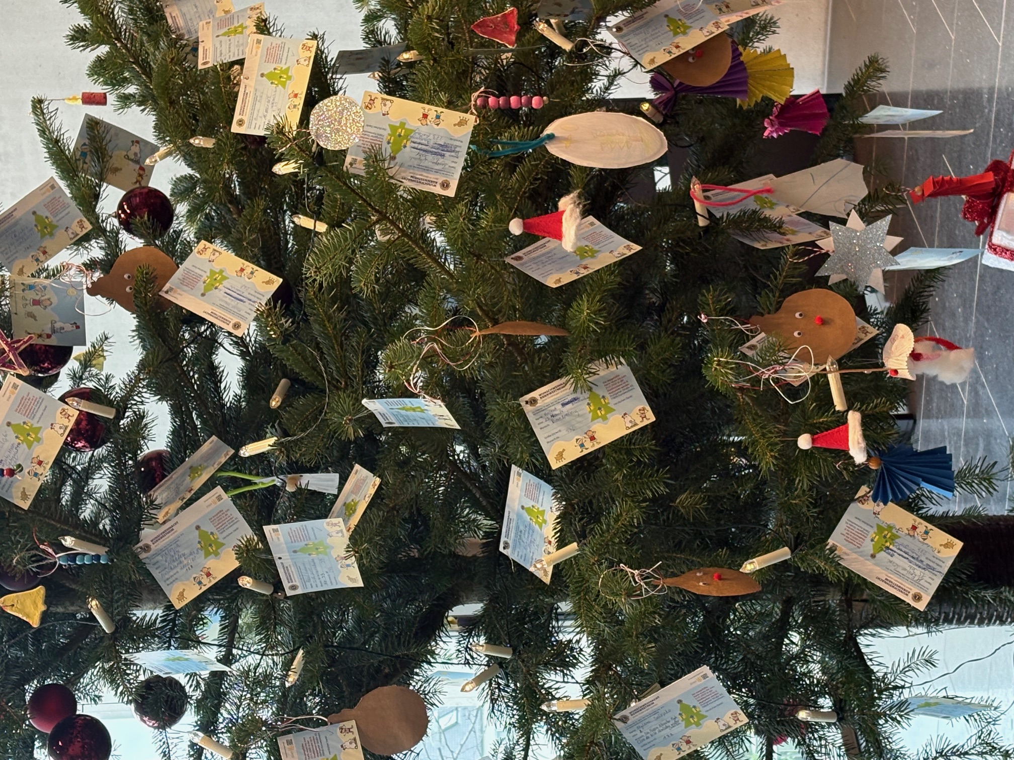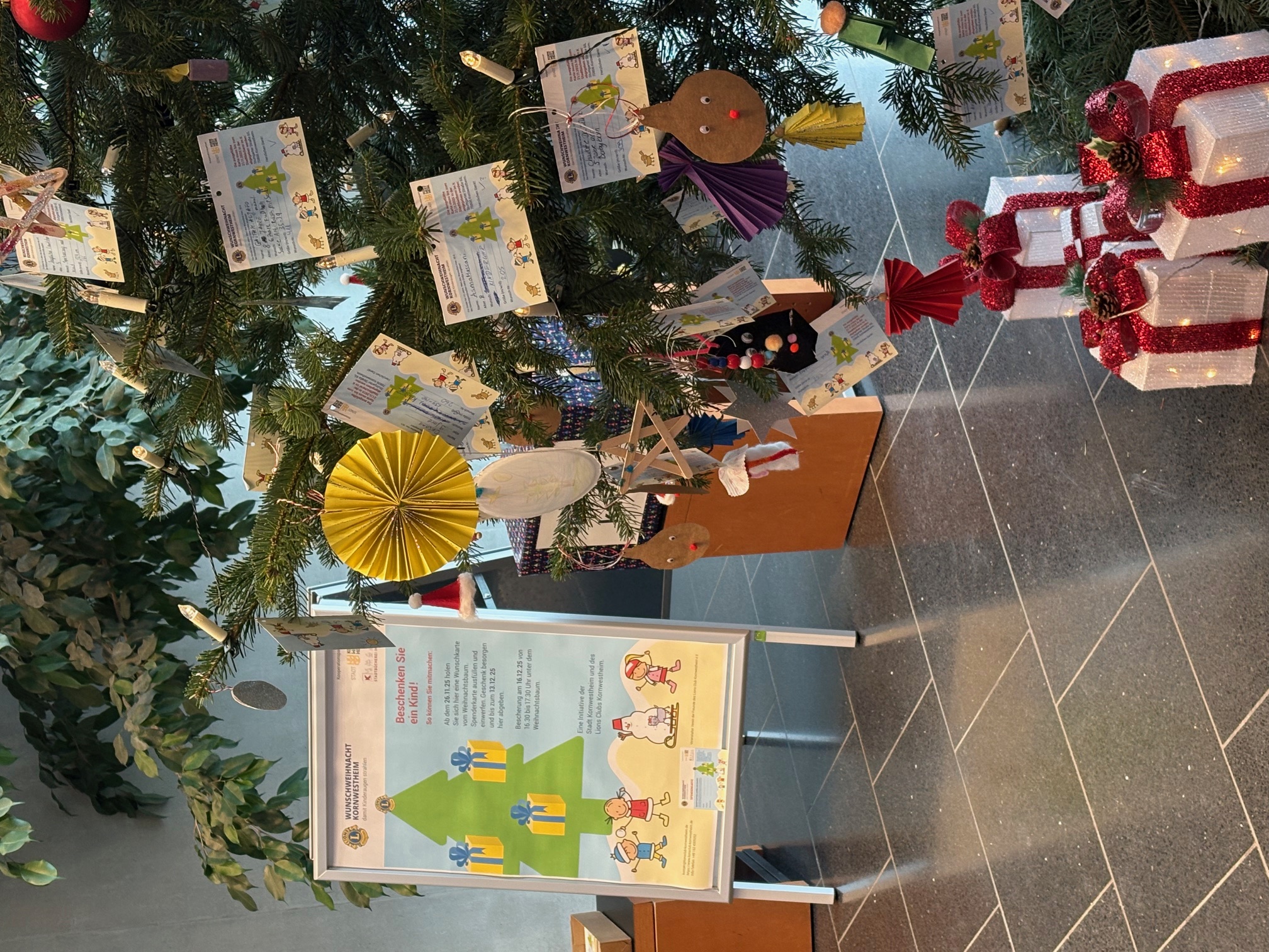 Die Engelbastler kamen von der Kita Kirchstraße zum Schmücken des Weihnachtswunschbaumes des Vereins der Freunde des Lions Clubs Kornwestheim e.V. in die Stadtbibliothek. Andere Kindergärten brachten ihren Schmuck mit, um dem Christbaum schön zu schmücken. Der trägt nämlich über 100 Wunschkarten von Kindern, die es vermutlich an Weihnachten nicht so üppig haben. Der Verein hat zusammen mit der Stadtverwaltung und dem Tafelladen Familien angeschrieben. Die Antwortkarten mit den Wünschen bis zu 25 Euro sind nun am Baum aufgehängt und können von Bürgerinnen und Bürgern abgeholt und erfüllt werden. Bis zum 11.12. werden in der Stadtbibliothek Karten und Päckchen angenommen. Am 12.12. ist Bescherung. Der Verein tritt dafür ein, dass alle Kinder auch ein Geschenk bekommen.